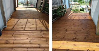 Laissez vous tenter par le charme d’une terrasse en bois essence Pin, traitée à cœur, classée 4.